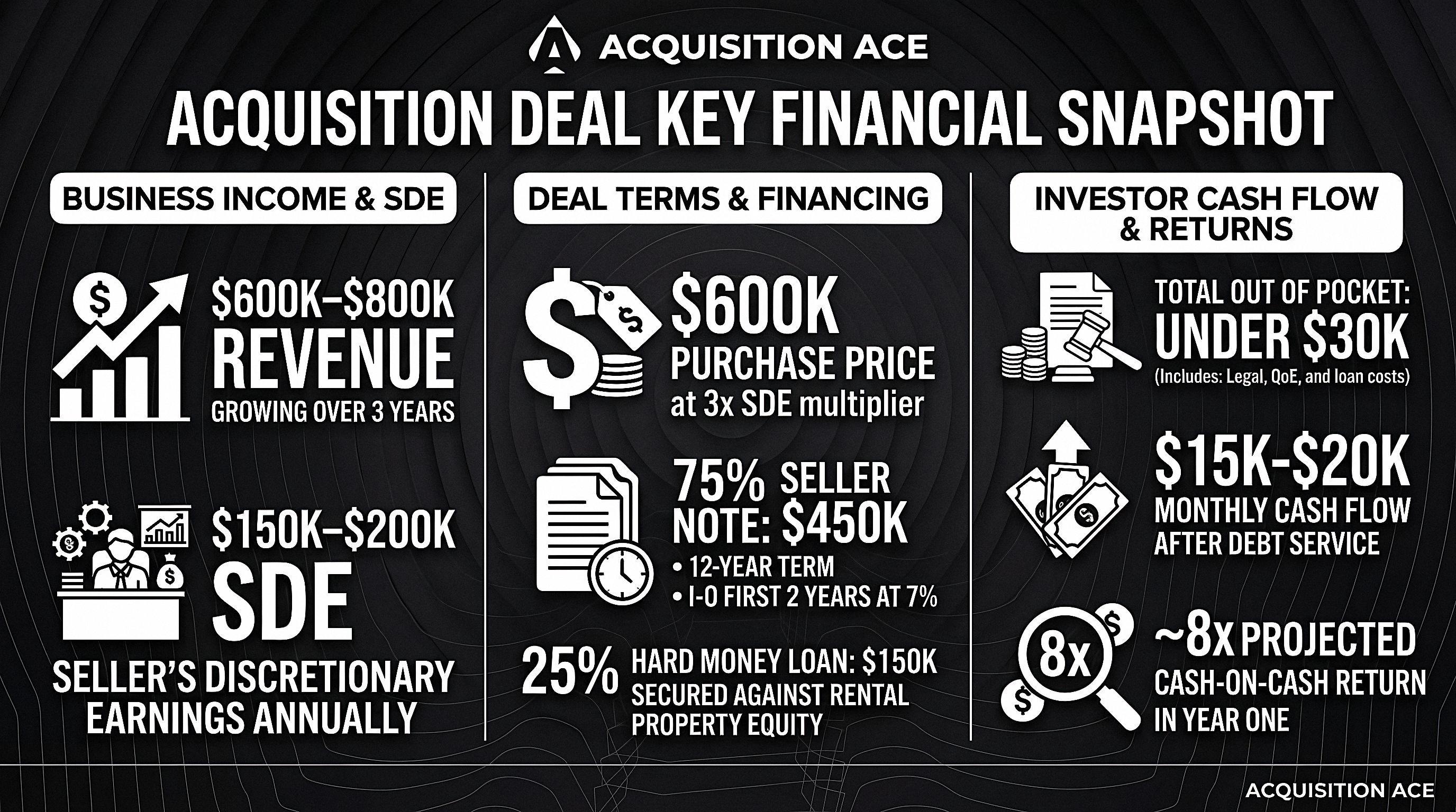 (Deals like this that come from your personal network are some of the most slept-on opportunities for acquisitions. Inside Acquisition Ace, members learn how to tap their network to source deals like Troy's. If you’d like to learn how to do that in our community, book a call with our team here.)