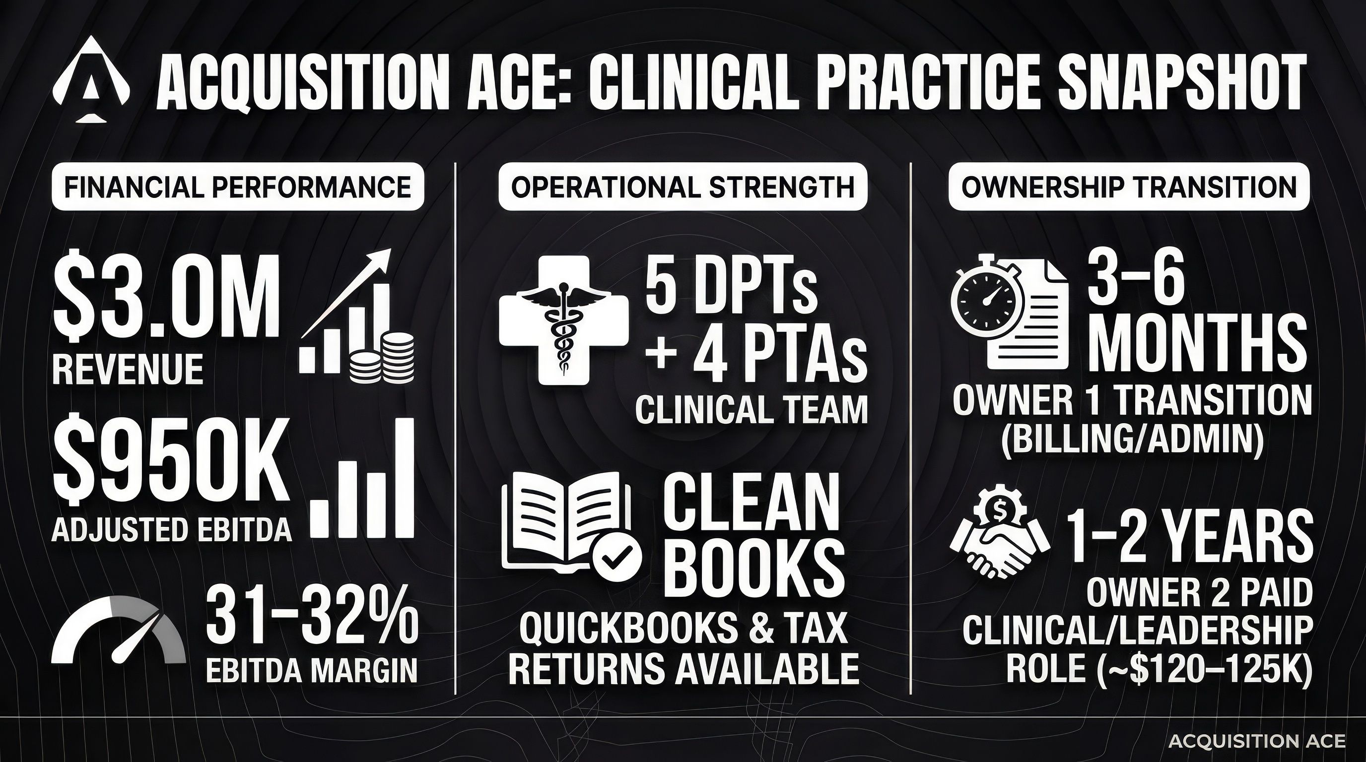 A $950K EBITDA with no single-provider dependency risk is rare in healthcare.