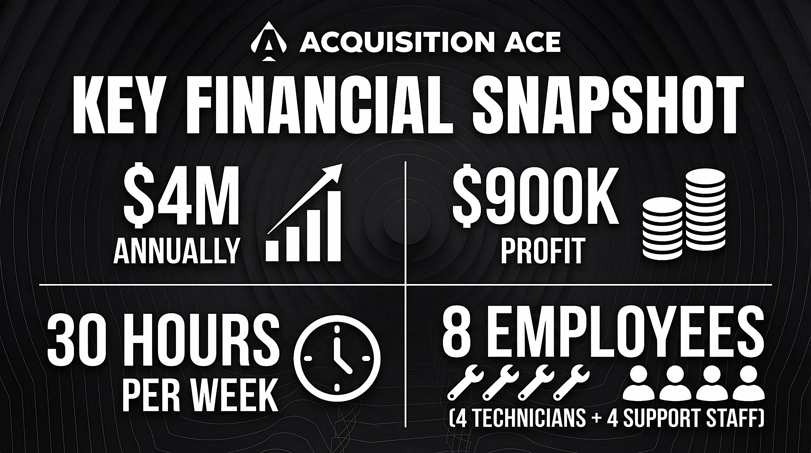 This operation is already generating $900K in profit with a full technical team in place, which reduces the operational burden on a new owner.