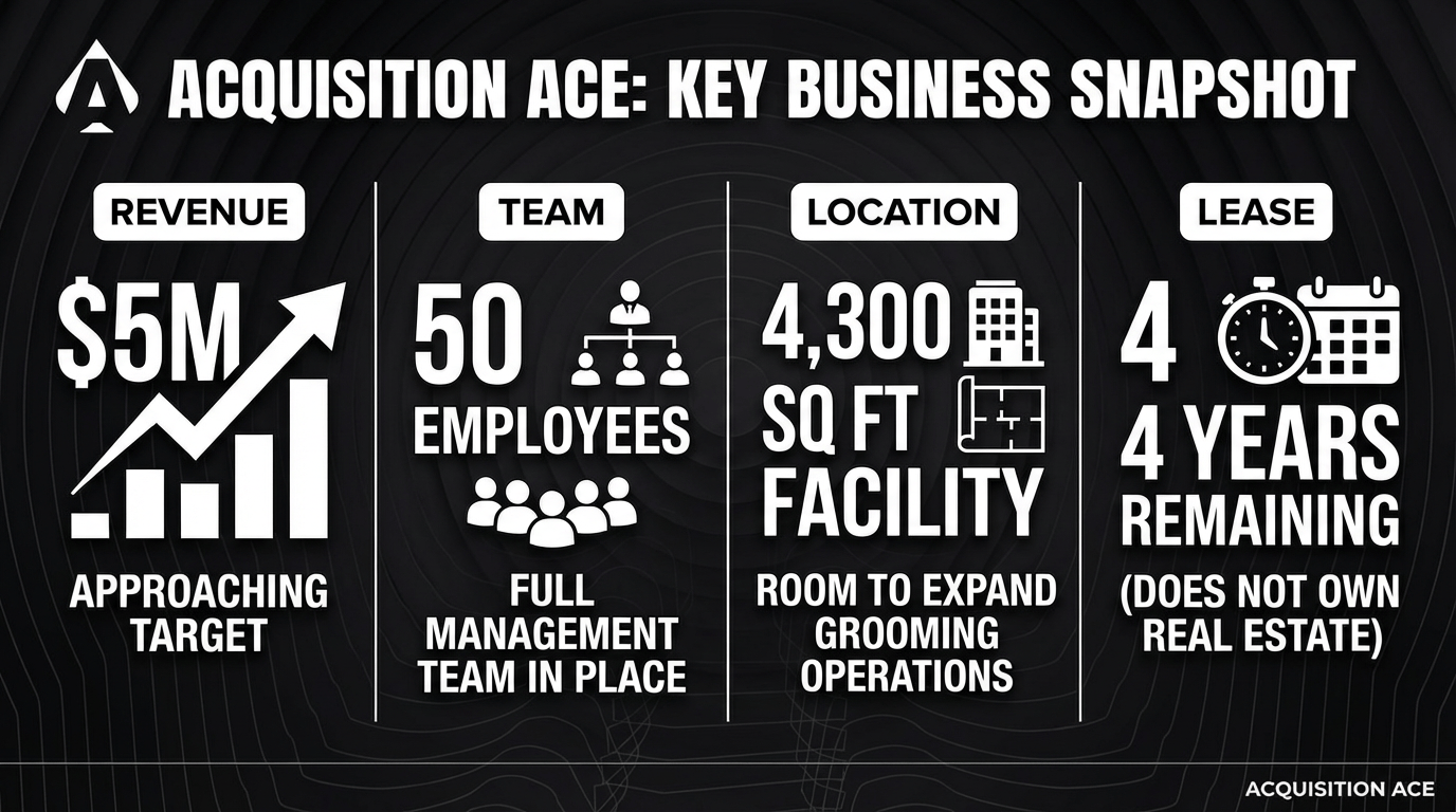 (Inside Acquisition Ace, members learn how to find rollup opportunities like this and negotiate with owners who have formal exit plans. Want to learn how to do that for yourself? Book a call with our team here.)
